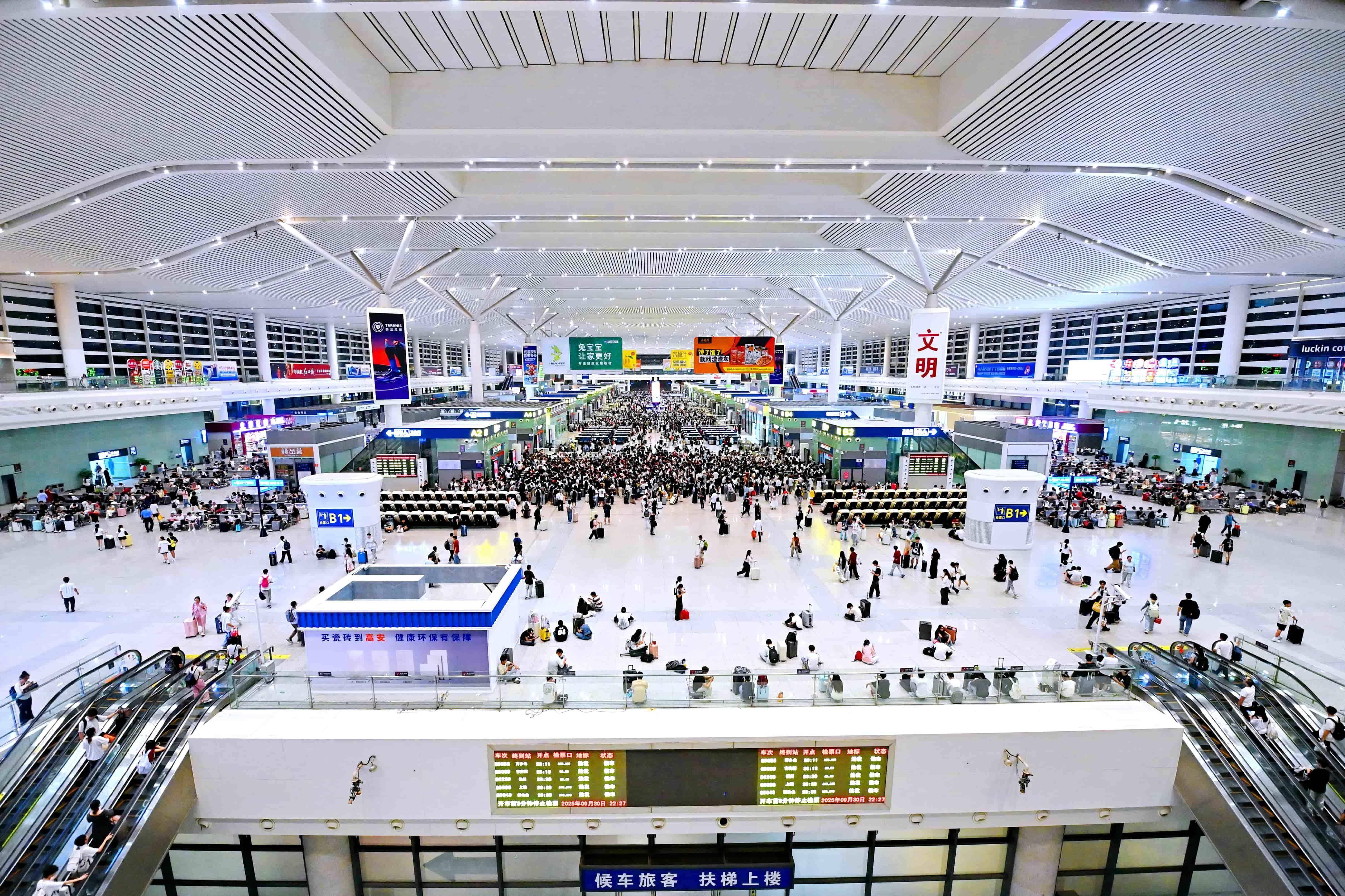 9月30日晚,东谈主流如织的南昌西站候车大厅。东谈主民网 朱海鹏摄