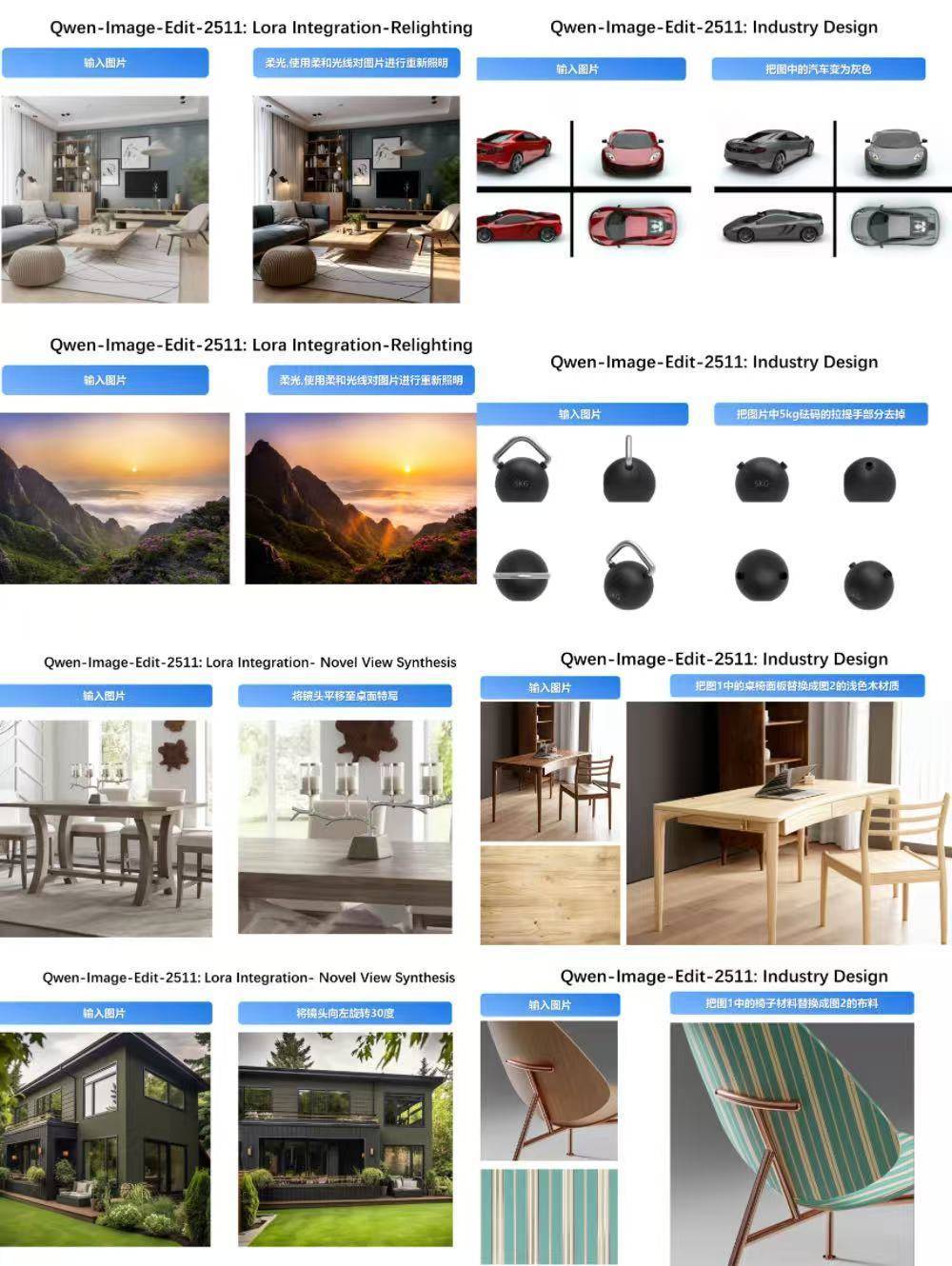 概述来看,内置LoRA的集成筹算栽培了Qwen-Image-Edit-2511在具体任务中的可用性,尤其在光照功令、材质替换、多视角生成等高频需求中展现出更高的商用适配性,为筹算、营销、内容生成等场景提供了更低资本的图像管理决策。