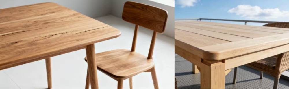 将居品图片中桌面与椅子的木质纹理替换为另一张图中的淡色松木柴质,保抓结构不变,仅替换材质贴图。