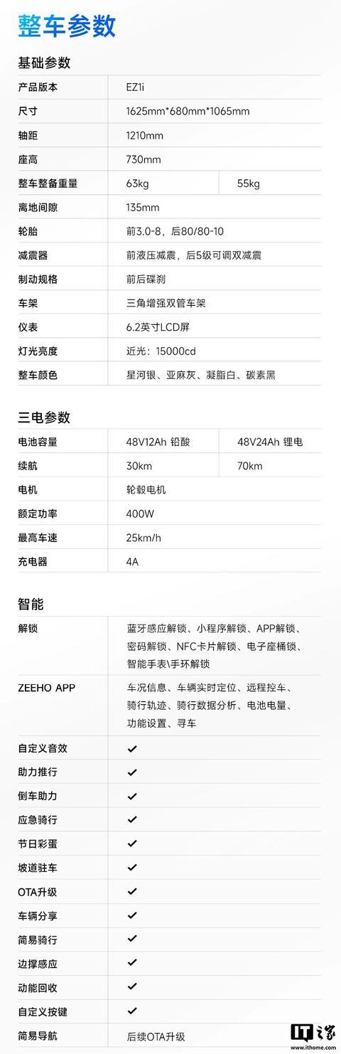 IT之家附极核 EZ1i 电动自行车设立表如下: