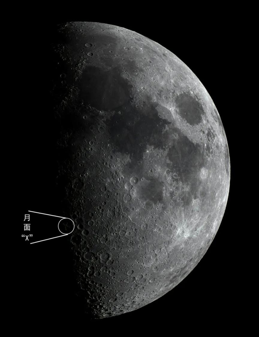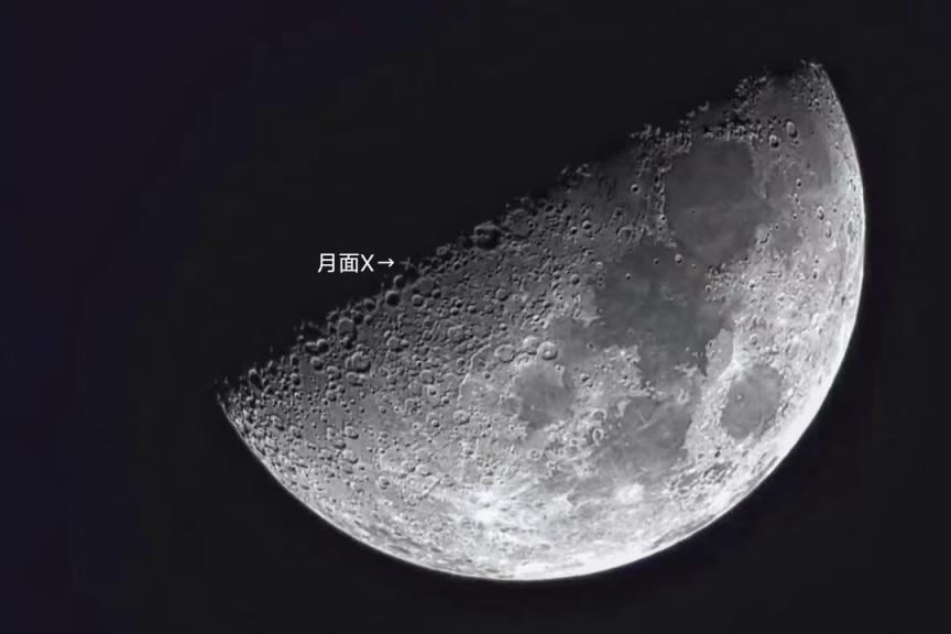 天津市天文体会理事、天津科学本领馆天文科普群众宋媛媛先容,上弦月的时候,当月球名义的拉卡耶环形山、普尔巴赫环形山和比安基奴斯环形山的顶部被阳光以近乎贴着月面的角度照亮,在月面的缺口处就不错看到访佛字母“X”雷同的地貌特征,这种兴盛即是月面X。